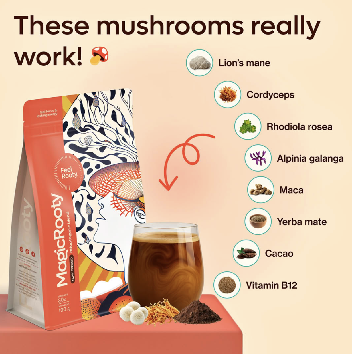 - Cacao : Better Mood, Maca : Energy, Yerba Mate : Mental Clarity