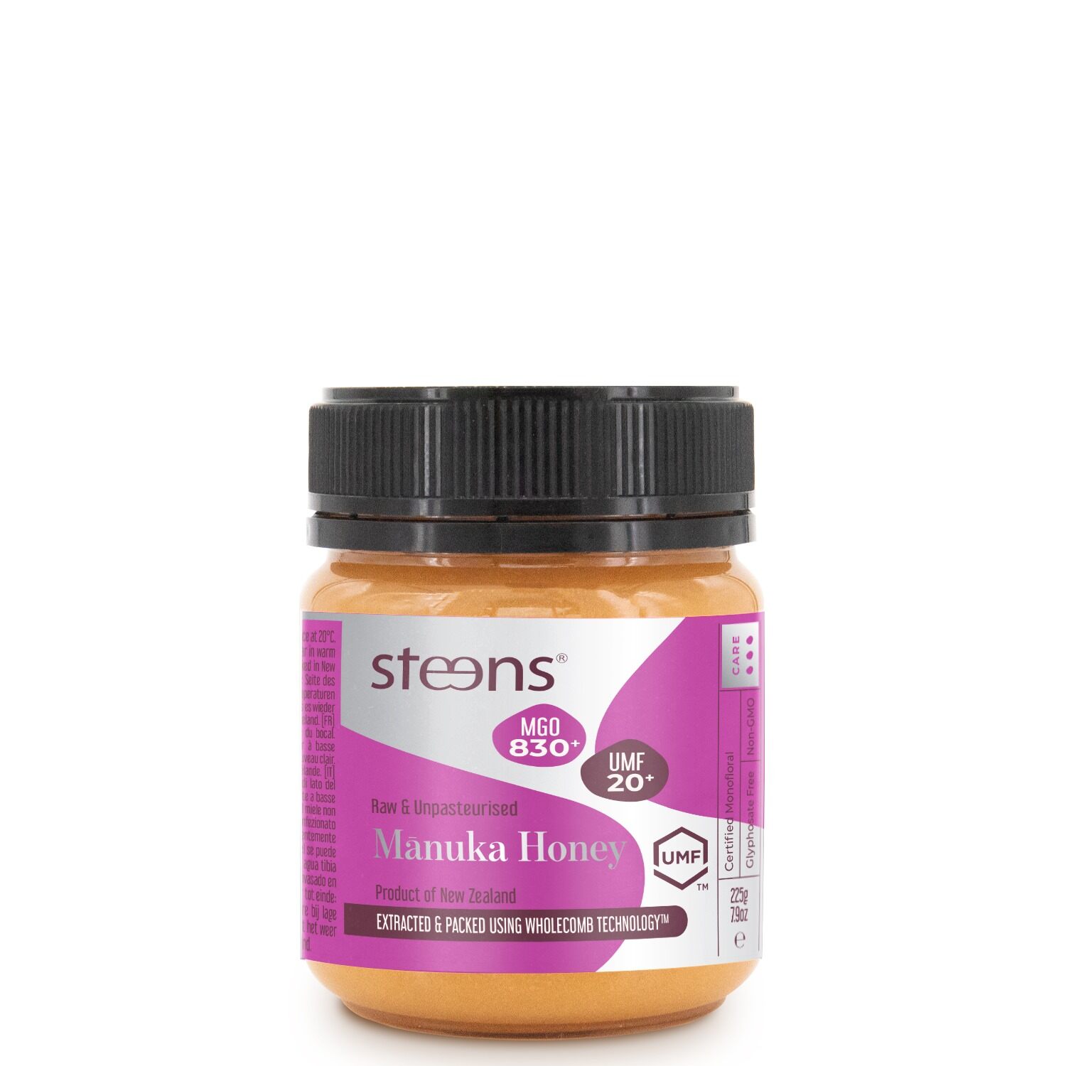 - Steens hunang er viðurkennt og vottað sem Monofloral Manuka hunang byggt á Útflutningstöðlum Nýja Sjálands.