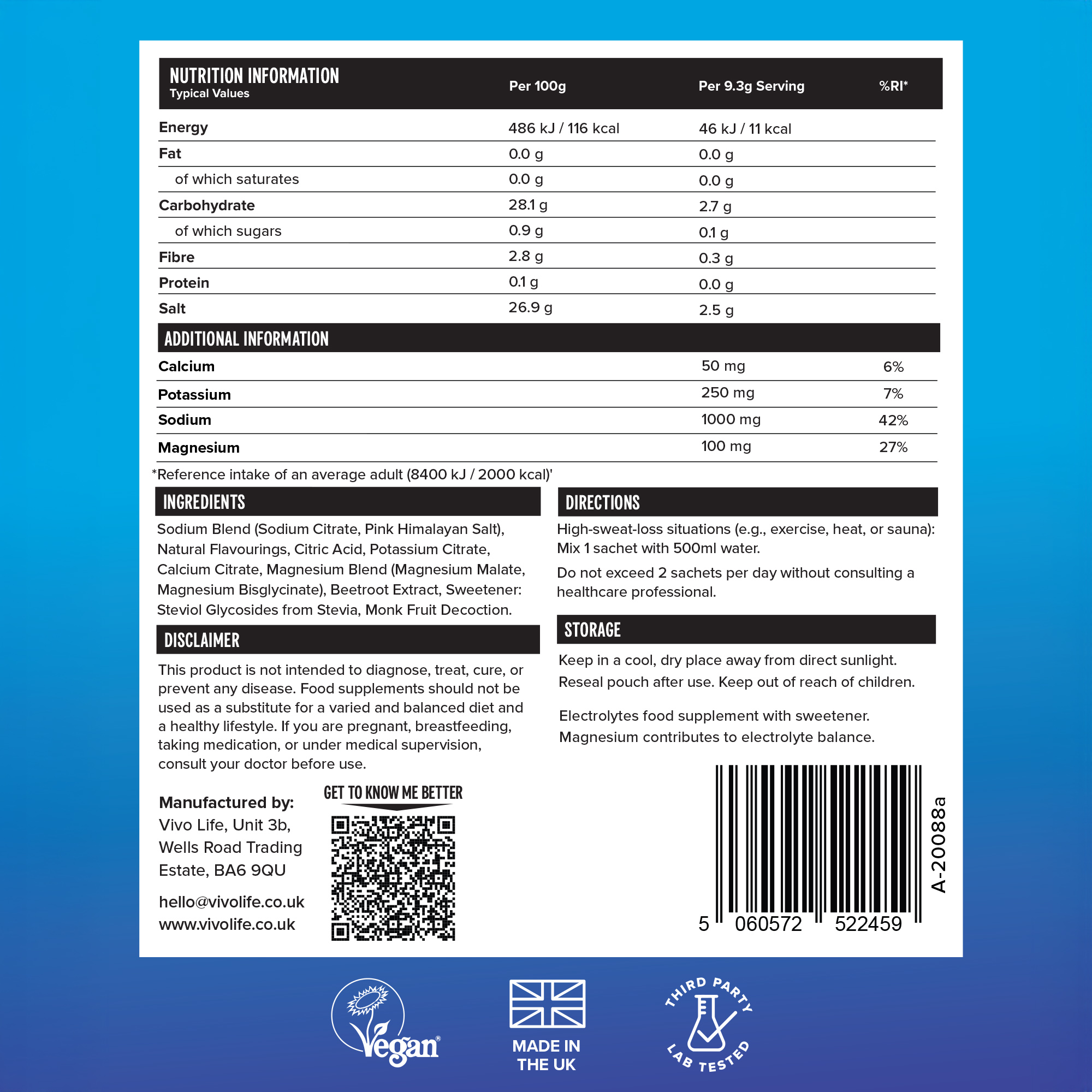 Vivo Life SUSTAIN Electrolytes Steinefnadrykkur 140g / 15 skammtar